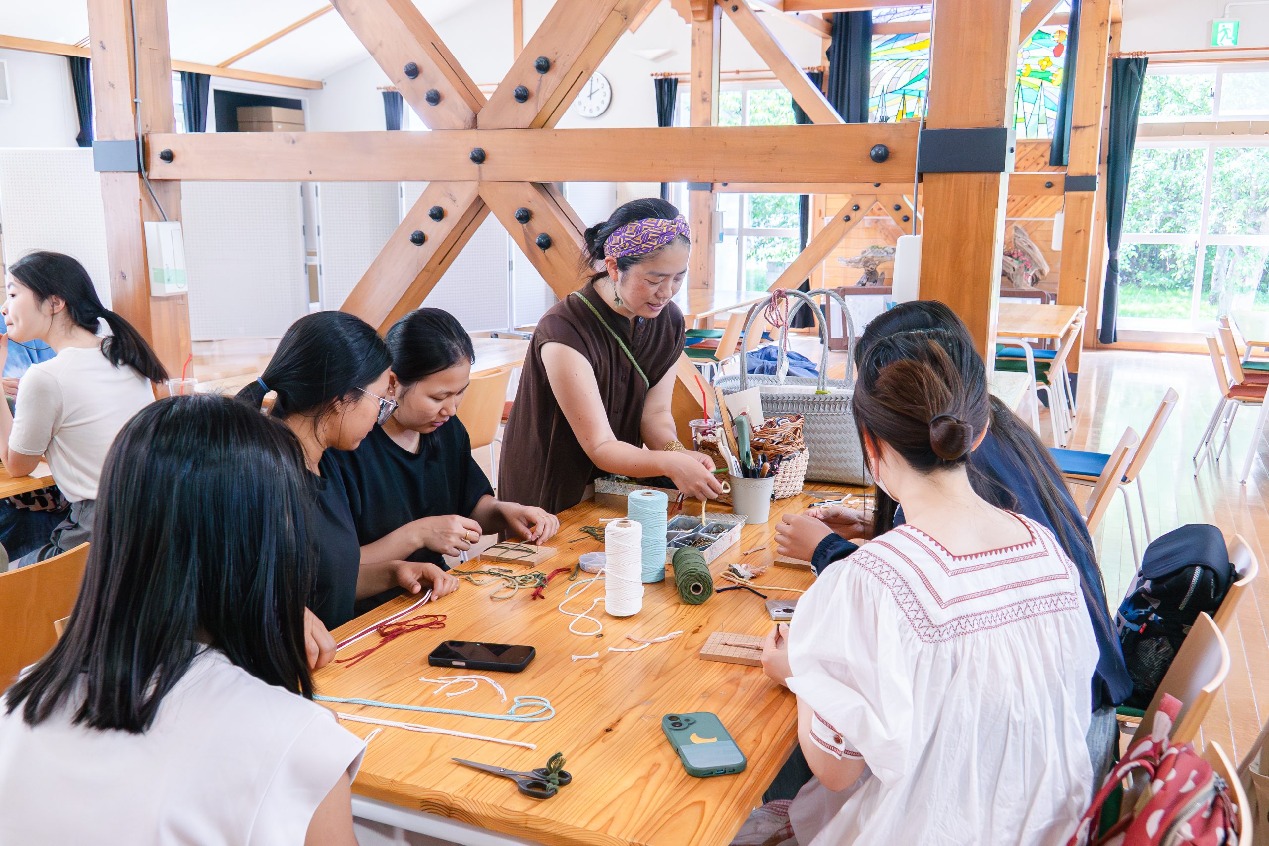 今回は北欧のカード織り、マクラメ編み、「ニットボールやニットリングを編んで作るピアス(イヤリング)」、スタンプでテキスタイル作りができるように